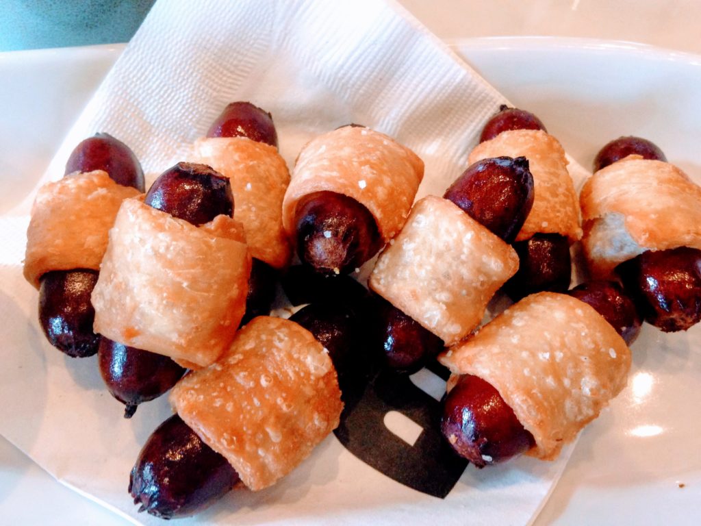 去餐廳吃晚餐,菜單上看到開胃菜有一個叫做”豬在毯子裡” pig in blanket. ?我天真的幻想以為是個一大塊豬排包在麵包裡,待會可以大口大口吃。(那時候非常餓!!!)?