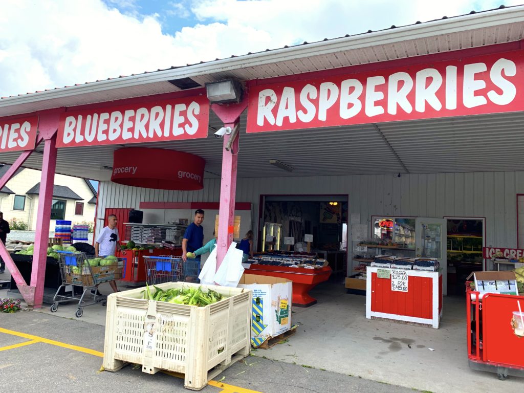 在抵達Cultus Lake 前突然看到路邊有好大的招牌寫著,當地生產的蔬菜和水果。身為主婦的我,怎麼能放過這個好機會了。馬上叫大河停車,讓我下去買個夠。