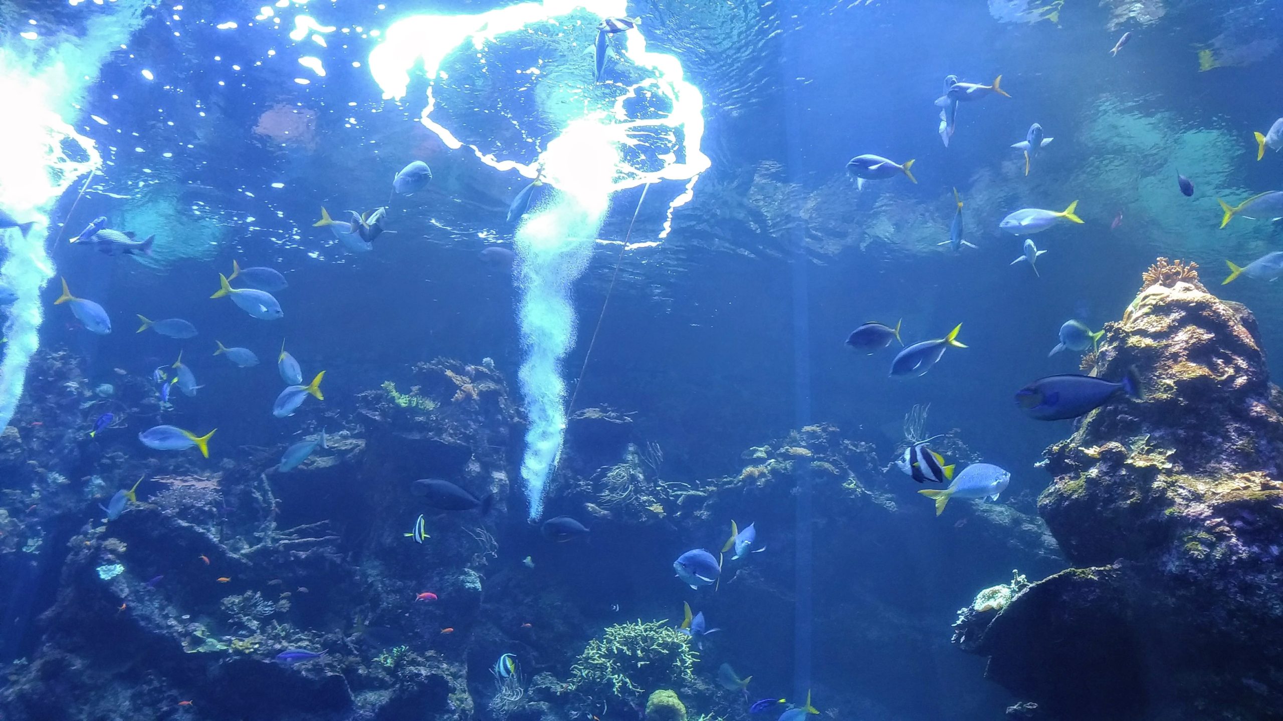 這裡的魚兒們好幸福。看到好多小孩子們根本就把臉貼在水族館的玻璃上,想要把所有的魚看清楚。我還看到了好多可愛的藍色多莉小魚,整個開心~