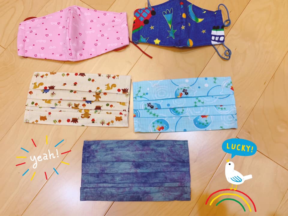 很幸運的我,視訊時看到滿桌不同樣式的布口罩,馬上來個線上點餐😆