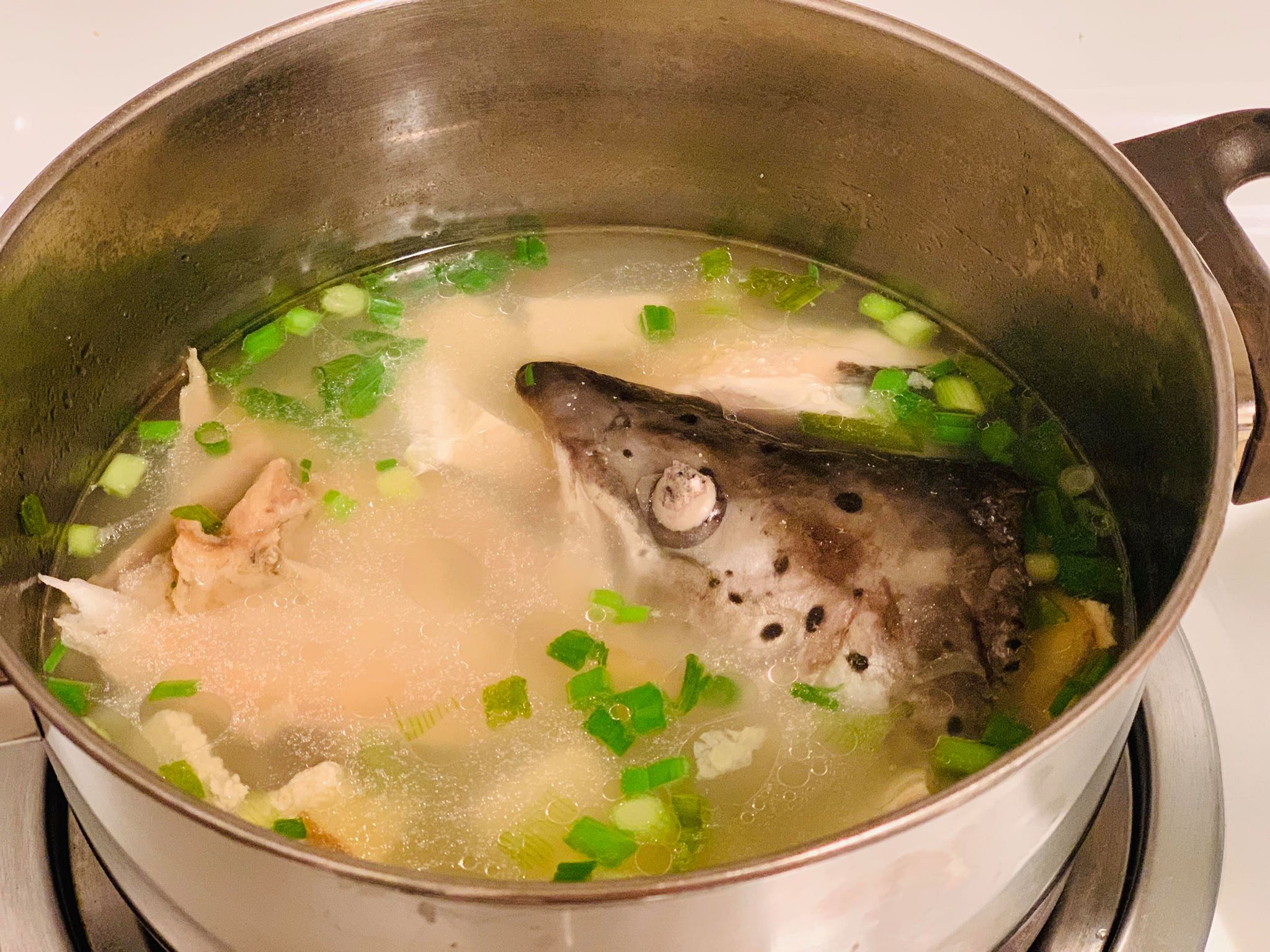 很慶幸的是,外國人不敢吃魚頭呢,嘿嘿~所以這一鍋的魚頭豆腐湯就會全部都進到我的肚子裡。超開心😃