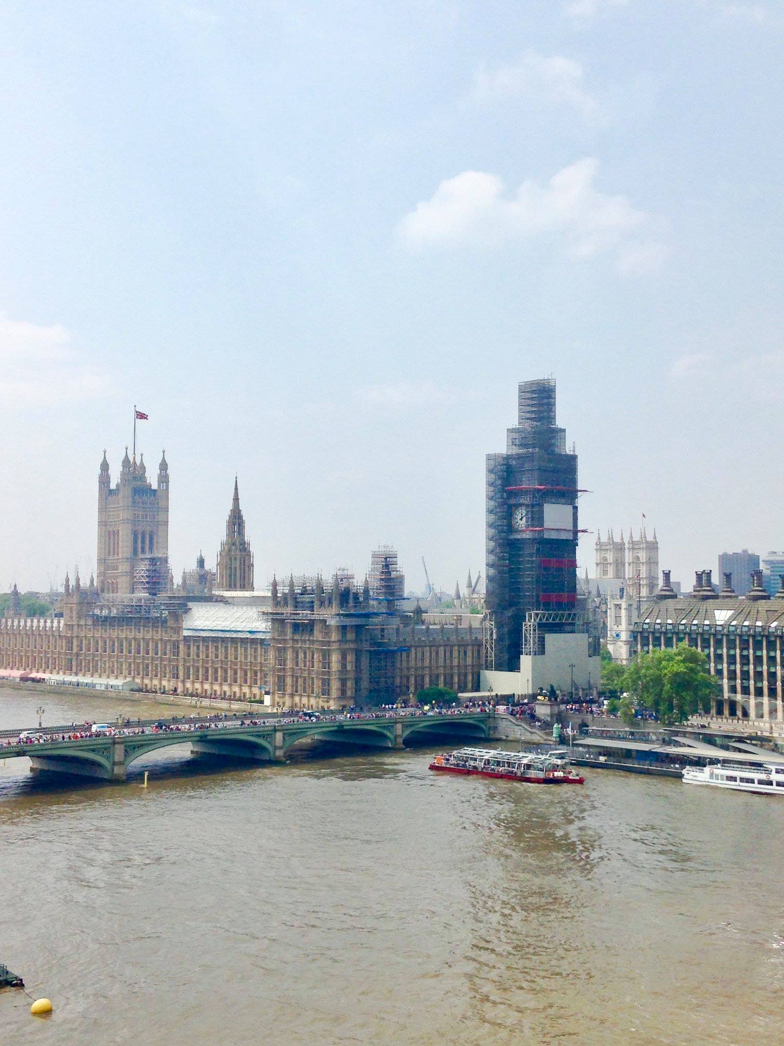 但很不巧的大笨鐘Big Ben 在整修,所以只能拍到被鐵網包圍的大笨鐘…..