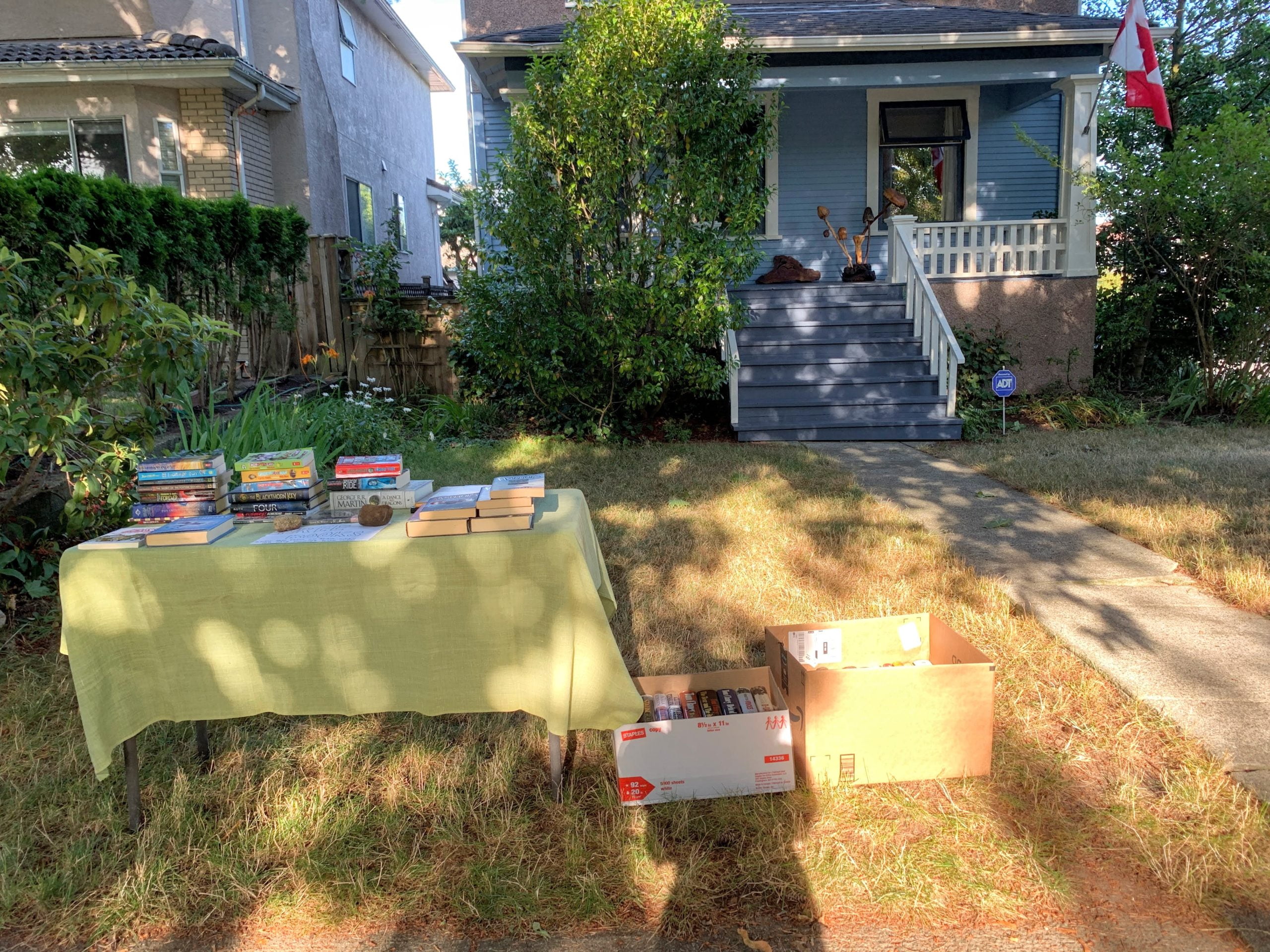 今天散步經過一個房子,門口桌上放了好多書,桌旁的紙箱也放了不少書📚。
