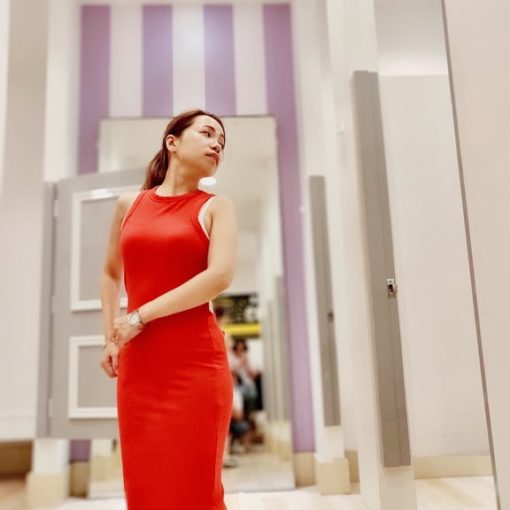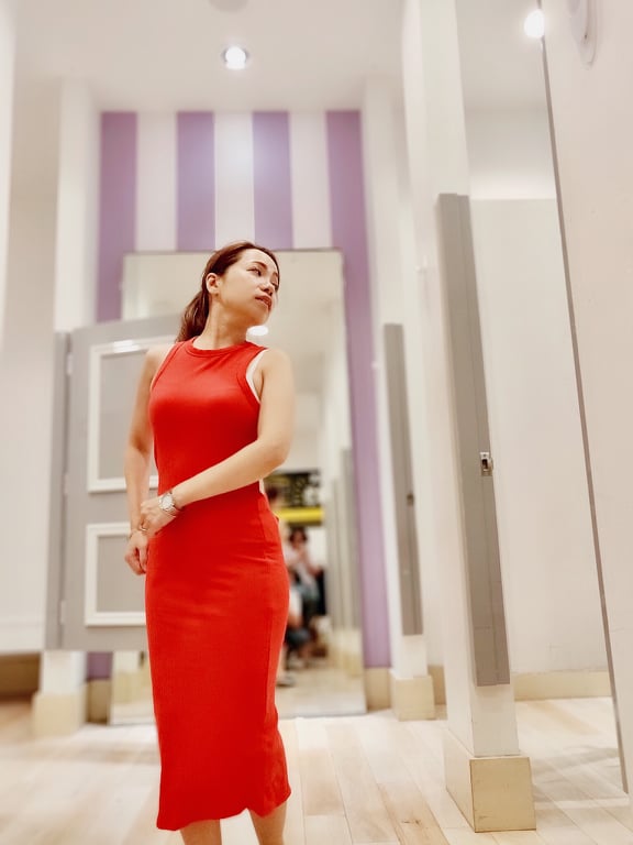 本來沒戴口罩的她,排隊時馬上戴起口罩來(很正常)