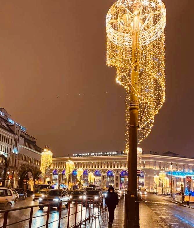 覺得莫斯科12月份的街道也太美,連路燈也裝飾的跟水晶燈一樣!!
