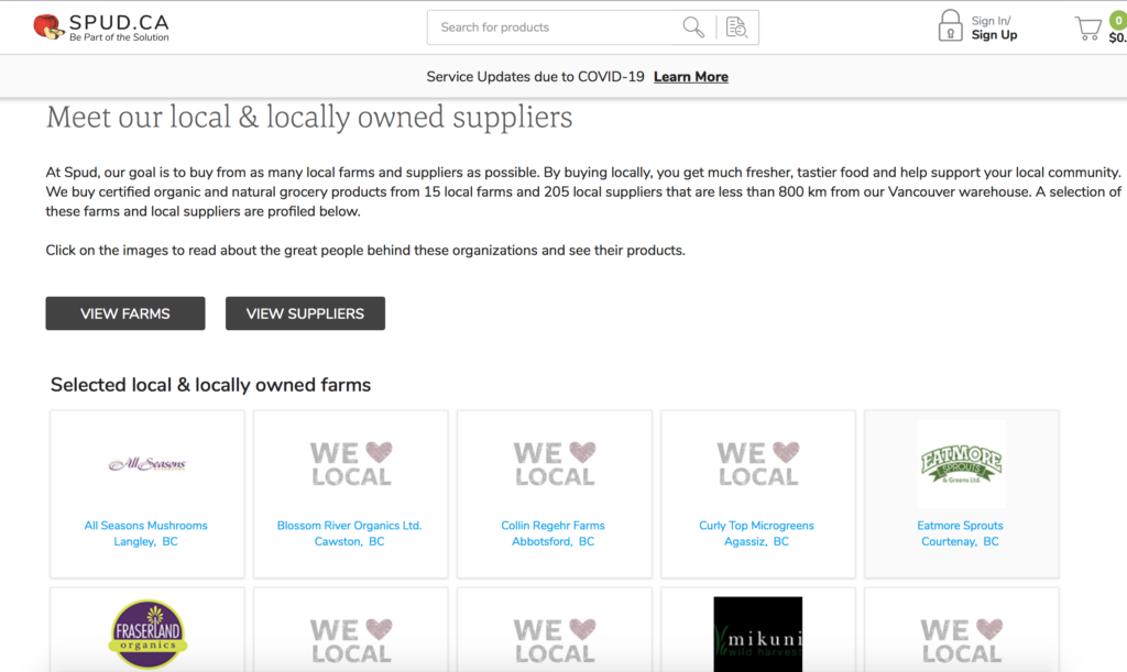 SPUD的服務地區有溫哥華 Vancouver/ 維多利亞Victoria / Kelowna/ Calgary / Edmonton
