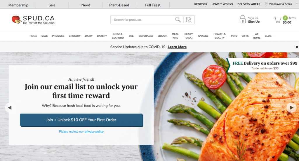 小提醒: 目前SPUD 有下單和運送的服務只有在靠近加拿大西岸部份。