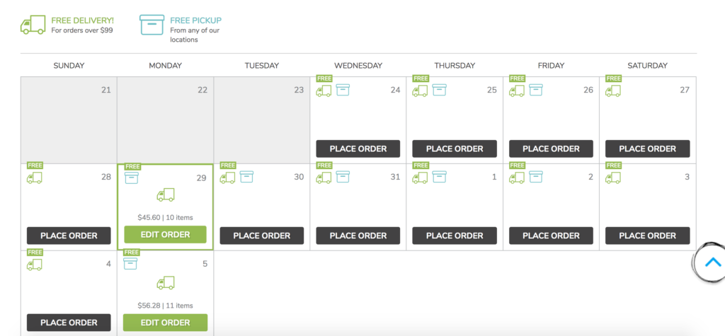 大部份的超市都是以次來收費。SPUD的訂單只要超過$99加幣就可以免運費,很划算。